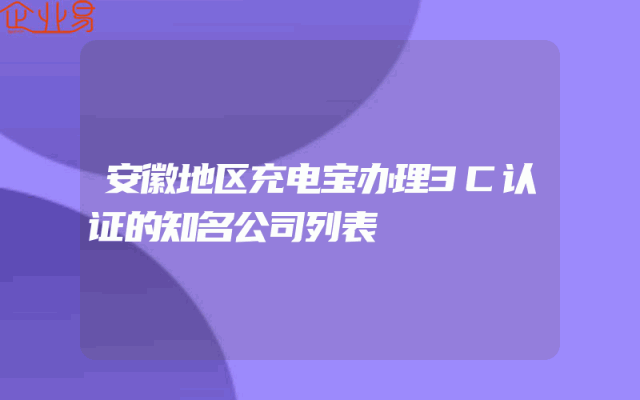 - 安徽地区充电宝办理3C认证的知名公司列表一、引言随着电子产品的普及,充电宝作为移动电源的重要形式,其质量和安全性日益受到关注。在中国,为了保障消费者的权益和安全,各类电子产品都需要经过严格的认证方可上市销售。在安徽地区,有多家公司在充电宝办