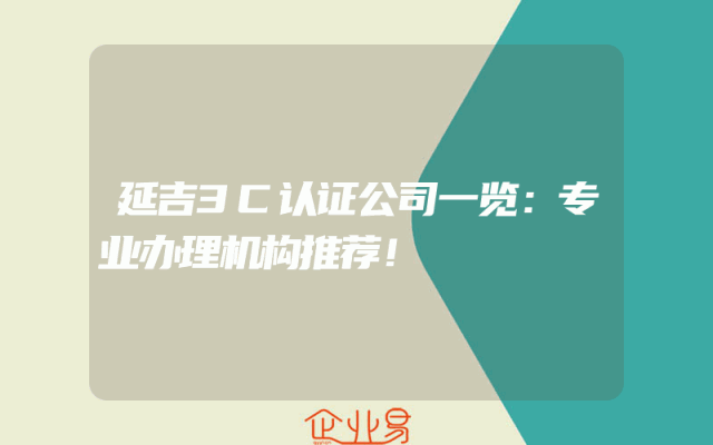 - 延吉3C认证公司一览:专业办理机构推荐!