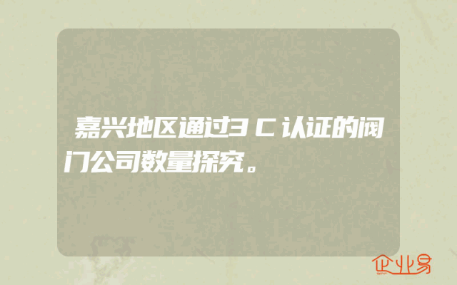 - 嘉兴地区通过3C认证的阀门公司数量探究。