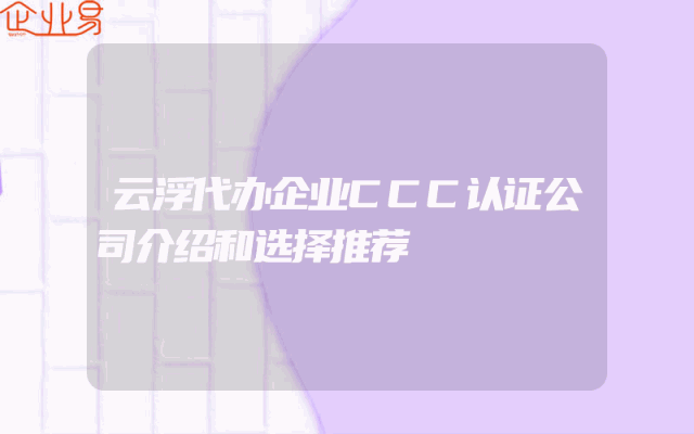 - 云浮代办企业CCC认证公司介绍和选择推荐