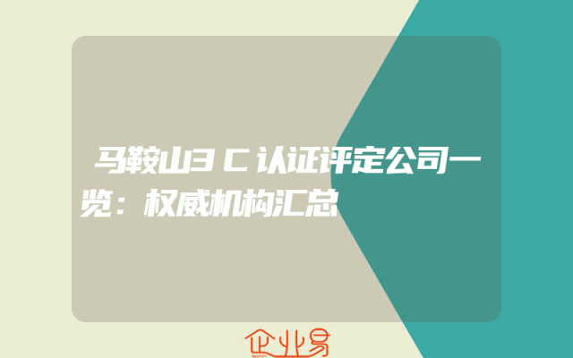 - 马鞍山3C认证评定公司一览:权威机构汇总