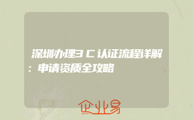 - 深圳办理3C认证流程详解:申请资质全攻略