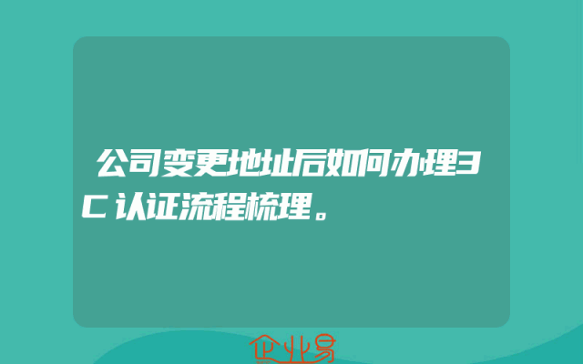- 公司变更地址后如何办理3C认证流程梳理。