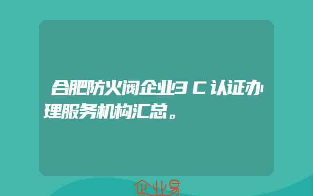 - 合肥防火阀企业3C认证办理服务机构汇总。