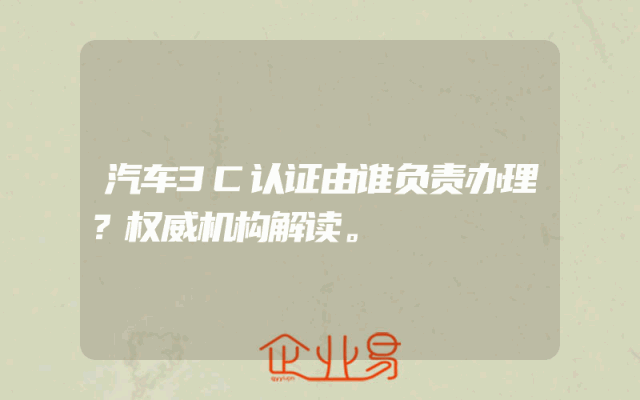 - 汽车3C认证由谁负责办理?权威机构解读。