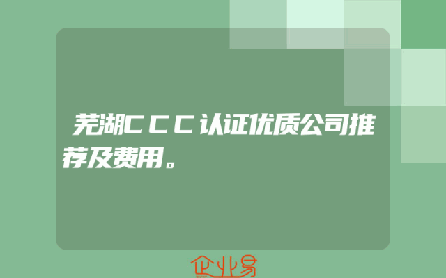 - 芜湖CCC认证优质公司推荐及费用。