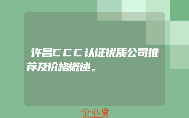 - 许昌CCC认证优质公司推荐及价格概述。