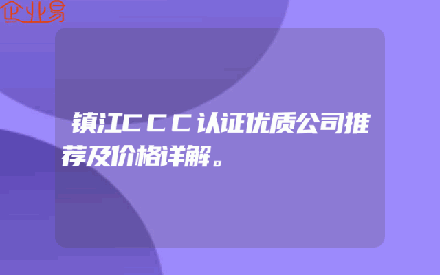 - 镇江CCC认证优质公司推荐及价格详解。