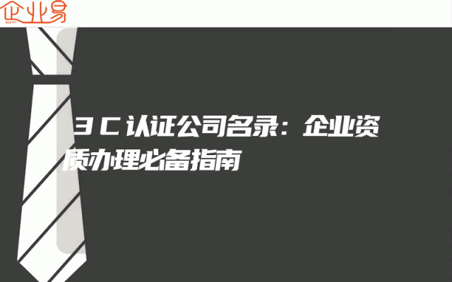 - 3C认证公司名录:企业资质办理必备指南