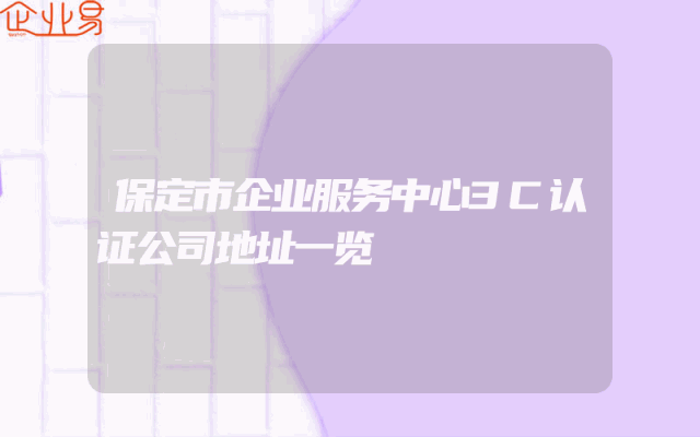 - 保定市企业服务中心3C认证公司地址一览