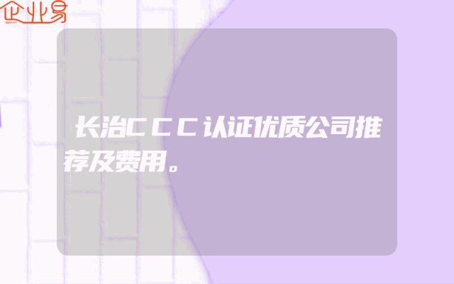 - 长治CCC认证优质公司推荐及费用。