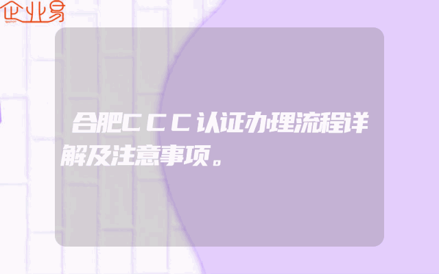 - 合肥CCC认证办理流程详解及注意事项。