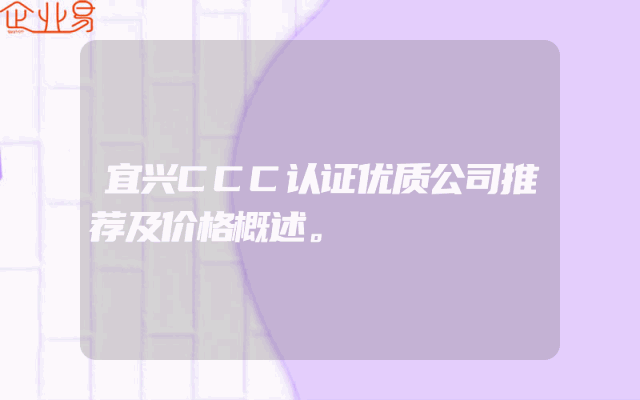 - 宜兴CCC认证优质公司推荐及价格概述。