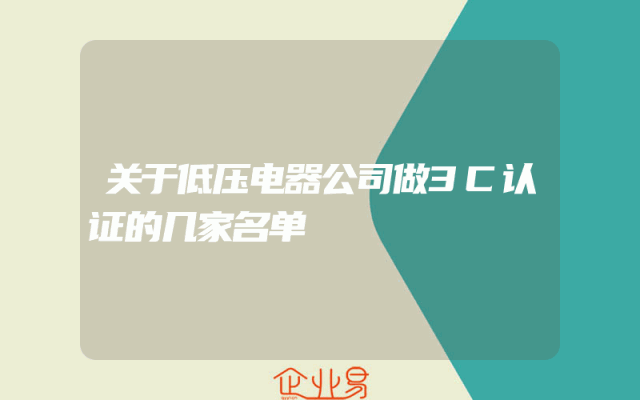 - 关于低压电器公司做3C认证的几家名单一、背景介绍近年来,随着中国市场对电器产品安全性能的日益重视,3C认证成为了企业参与市场竞争的重要门槛。对于低压电器公司而言,获得3C认证不仅意味着产品质量的保证,更是企业信誉的体现。以下是几家成功取得3