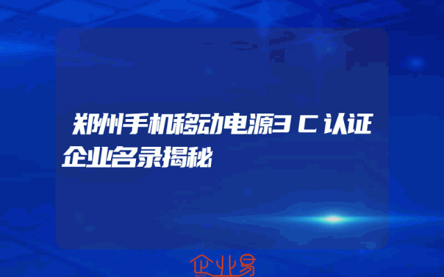 - 郑州手机移动电源3C认证企业名录揭秘