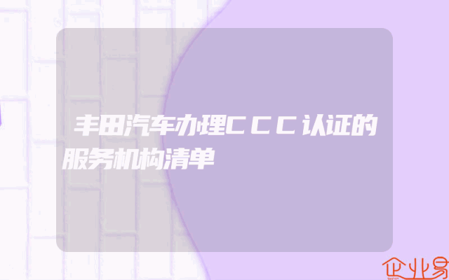 - 丰田汽车办理CCC认证的服务机构清单