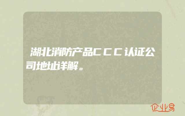 - 湖北消防产品CCC认证公司地址详解。