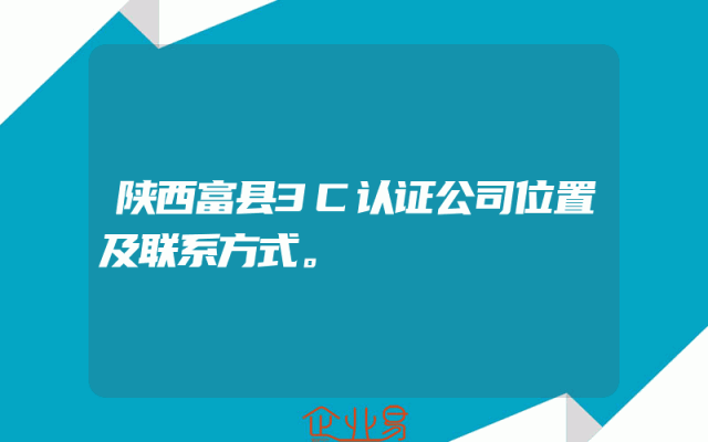 - 陕西富县3C认证公司位置及联系方式。