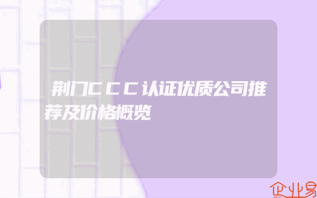 - 萍乡优质CCC认证服务公司及价格解析一、萍乡CCC认证服务公司概述随着市场经济的繁荣发展,萍乡地区的企业面临着日益激烈的市场竞争。为提高市场竞争力,众多企业纷纷寻求通过CCC认证来增强自身实力。在萍乡,一些优质的CCC认证服务公司应