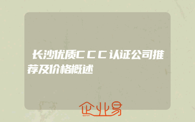 - 长沙优质CCC认证公司推荐及价格概述
