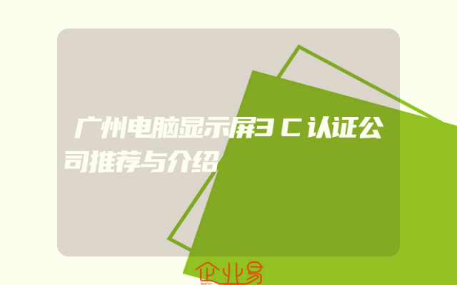 - 广州电脑显示屏3C认证公司推荐与介绍一、引言在中国市场,电脑显示屏产品需要经过一系列的认证才能合法销售,其中最为人们所熟知的就是3C认证。广州作为电子产品的重要集散地,拥有众多专业的电脑显示屏3C认证公司。本文将为您详细介绍几家在广