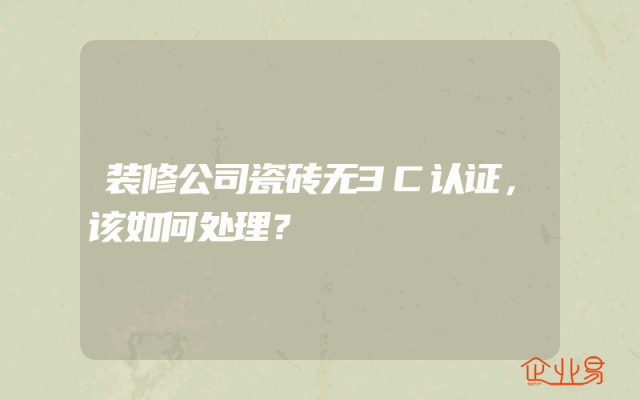 - 装修公司瓷砖无3C认证,该如何处理?