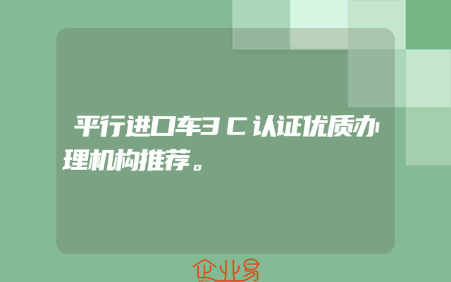 - 平行进口车3C认证优质办理机构推荐。