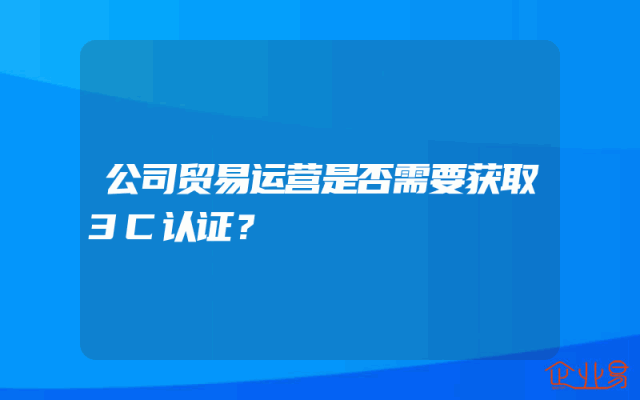 - 公司贸易运营是否需要获取3C认证?