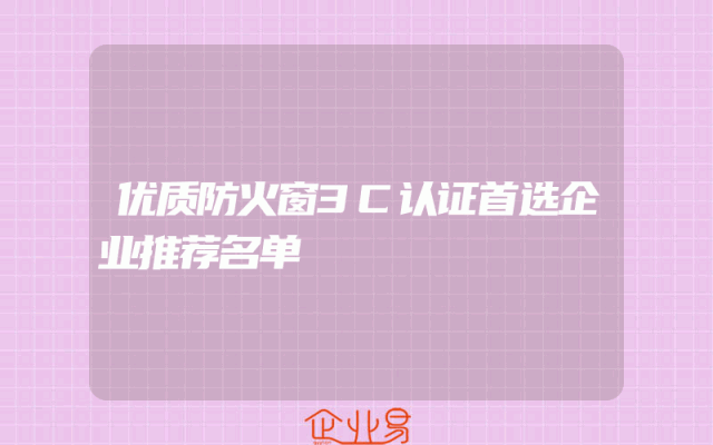 - 优质防火窗3C认证首选企业推荐名单一、引言随着建筑行业的快速发展,防火安全成为了重中之重。优质防火窗作为建筑物防火安全的重要组成部分,其质量直接关系到人民生命财产安全。为此,选择拥有3C认证的企业生产的防火窗至关重要。本文将为您推荐一些优质