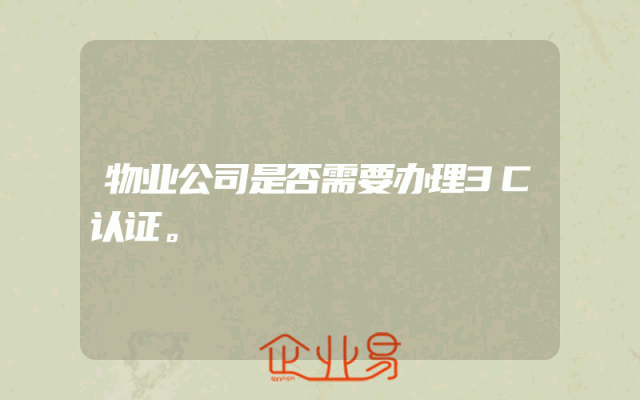 - 物业公司是否需要办理3C认证了解3C认证及其适用范围首先,我们需要明确什么是3C认证。3C认证是中国政府为保护消费者人身安全和国家安全,加强产品质量管理的一种产品合格评定制度。它适用于众多领域,包括电子产品、电器产品、汽车配件等。对于物业公