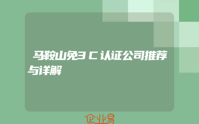 - 马鞍山免3C认证公司推荐与详解一、什么是免3C认证在中国市场,部分商品销售需要进行强制性的产品认证,其中最常见的是CCC认证(即中国强制认证,简称3C认证)。而免3C认证则意味着某些企业或其产品符合特定的标准或条件,可以免于进行CCC认证,