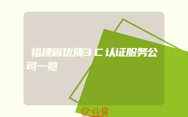 - 福建省优质3C认证服务公司一览一、引言随着市场经济的快速发展,产品质量认证已经成为企业进入市场的重要门槛。在福建省,众多企业面临着产品认证的压力与挑战。为满足这一需求,福建省涌现出了一批优质的3C认证服务公司,它们在帮助企业顺利获得认证方面