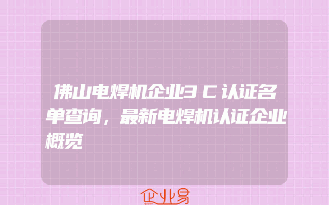 - 佛山电焊机企业3C认证名单查询,最新电焊机认证企业概览