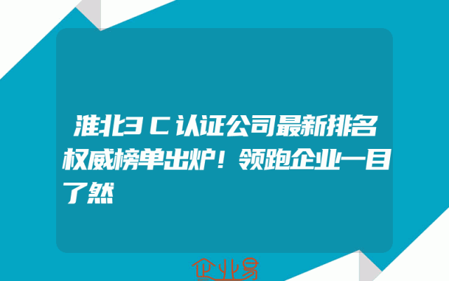 - 淮北3C认证公司最新排名权威榜单出炉!领跑企业一目了然