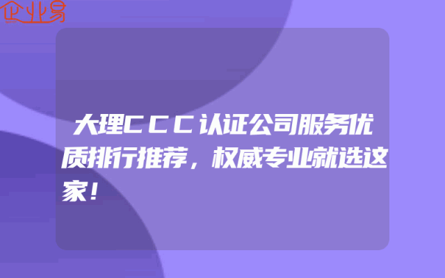 - 大理CCC认证公司服务优质排行推荐,权威专业就选这家!
