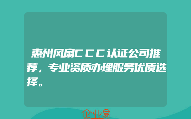 - 惠州风扇CCC认证公司推荐,专业资质办理服务优质选择。