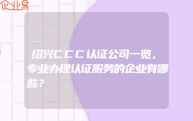 - 绍兴CCC认证公司一览,专业办理认证服务的企业有哪些?