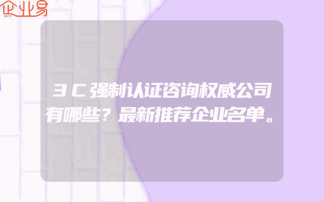 - 3C强制认证咨询权威公司有哪些?最新推荐企业名单。