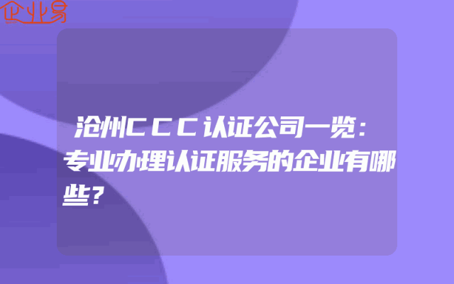 - 沧州CCC认证公司一览:专业办理认证服务的企业有哪些?