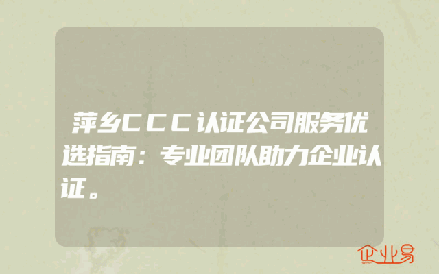 - 萍乡CCC认证公司服务优选指南:专业团队助力企业认证。