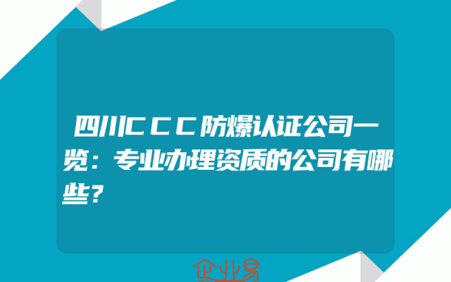 - 四川CCC防爆认证公司一览:专业办理资质的公司有哪些?
