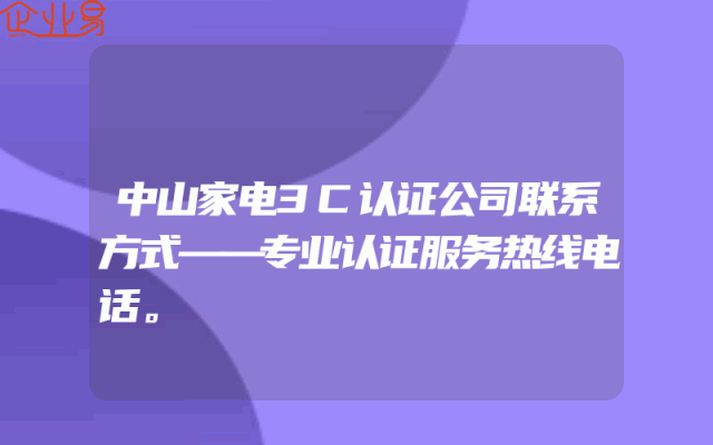 - 中山家电3C认证公司联系方式——专业认证服务热线电话。