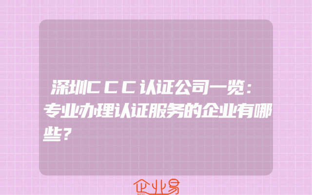 - 深圳CCC认证公司一览:专业办理认证服务的企业有哪些?
