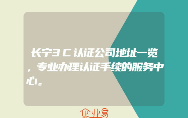 - 长宁3C认证公司地址一览,专业办理认证手续的服务中心。
