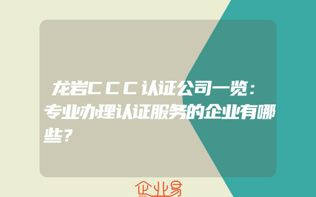 - 龙岩CCC认证公司一览:专业办理认证服务的企业有哪些?