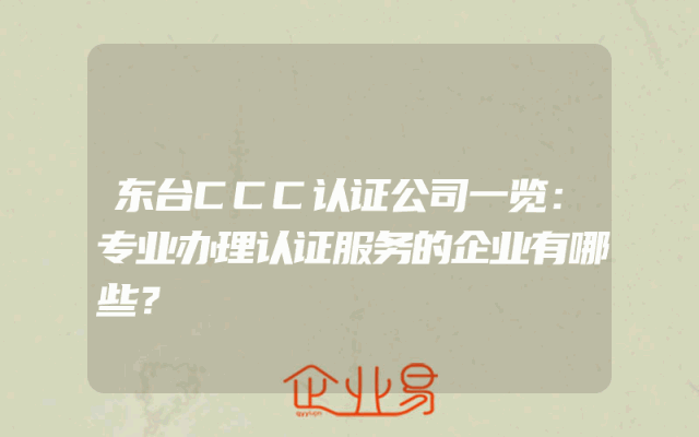 - 东台CCC认证公司一览:专业办理认证服务的企业有哪些?