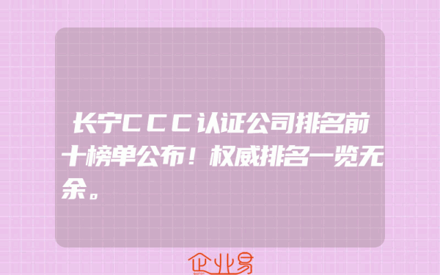 - 长宁CCC认证公司排名前十榜单公布!权威排名一览无余。