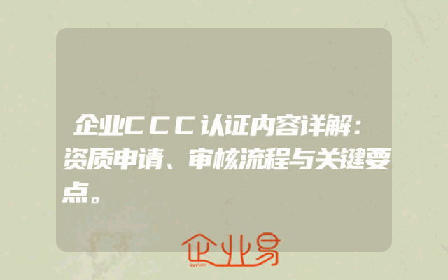 - 企业CCC认证内容详解:资质申请、审核流程与关键要点。