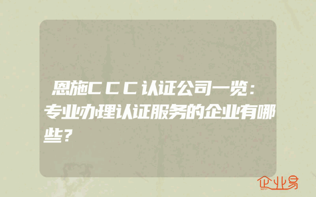 - 恩施CCC认证公司一览:专业办理认证服务的企业有哪些?