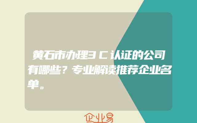 - 黄石市办理3C认证的公司有哪些?专业解读推荐企业名单。